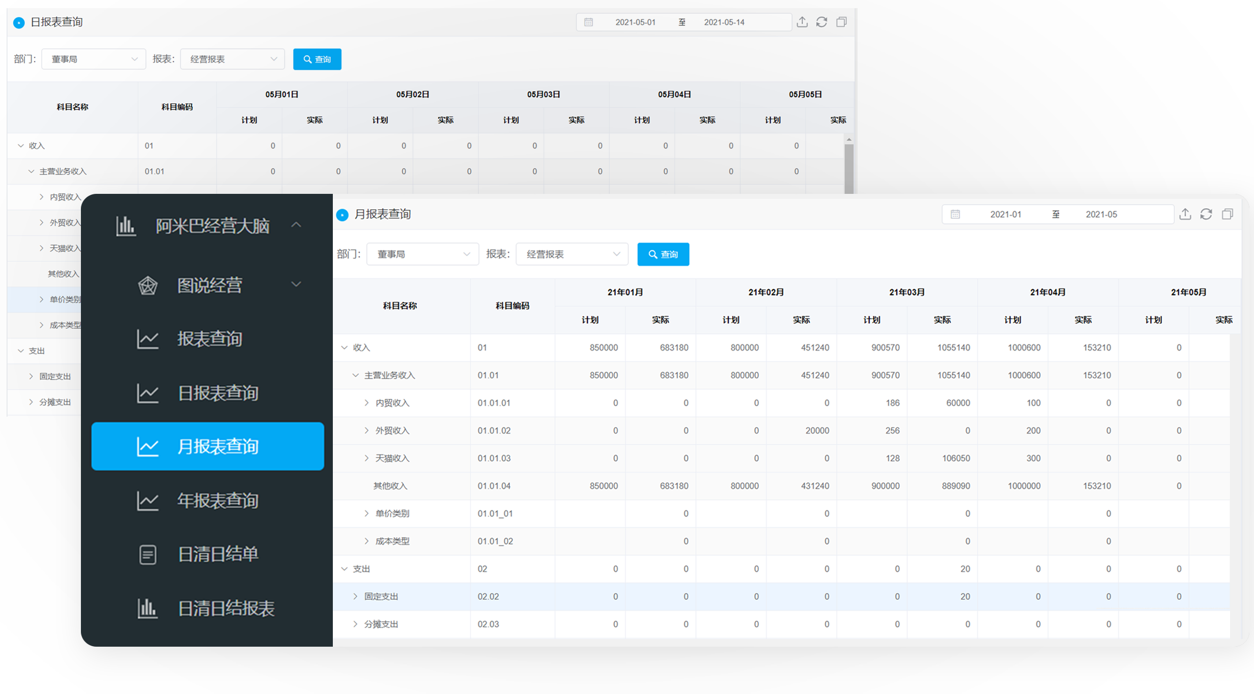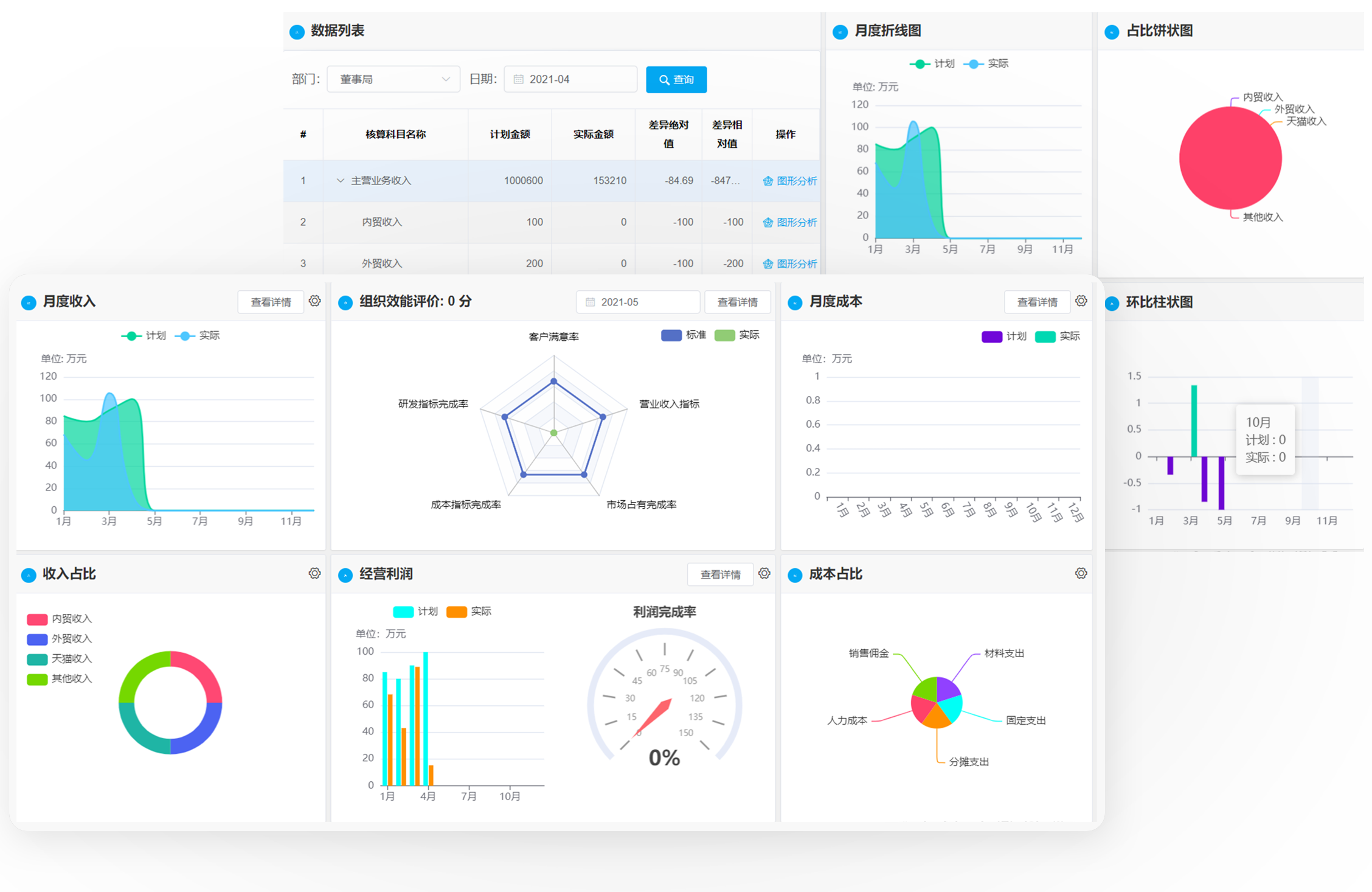 阿米巴核算报表具备经营计划执行分析功能