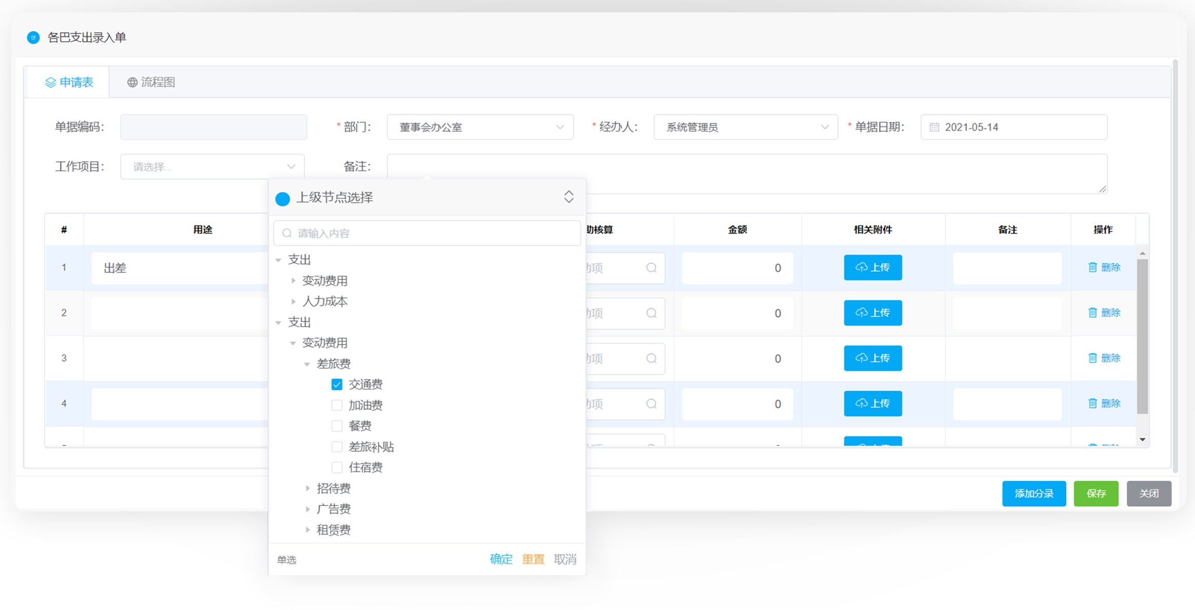 费用支出单据可以自定义审批流程,支持手机审批